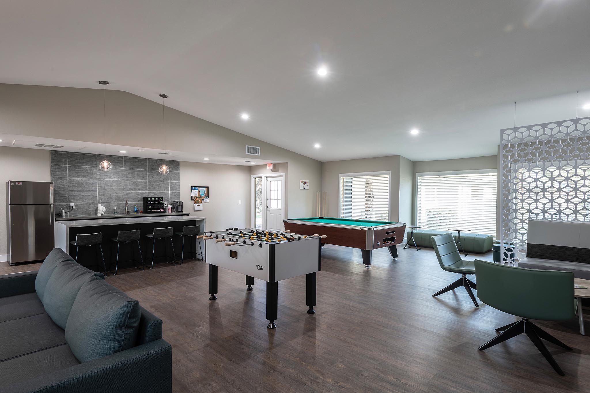 Blackhawk has also created exciting new amenities, including a fenced dog park, a redesigned playground with durable rubber mulch, and new PVC fencing at every patio for added privacy and a sleek look. Residents can now enjoy a revitalized fitness room, a stylish community center complete with a pool table, foosball, and lounge space, as well as a refreshed leasing office to better serve the community.